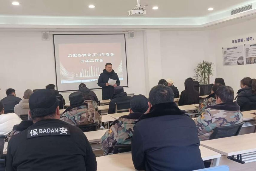 为确保2025年春季开学工作正常开展,做好广大师生返校各项保障工作👮🏿♂️,2025年2月13日上午9:30,安全管理与后勤处在行政楼101会议室召开2025年春季开学工作会,安全管理与后勤处副处长单亚洲主持会议,安全管理与后勤处全体人员参加。
