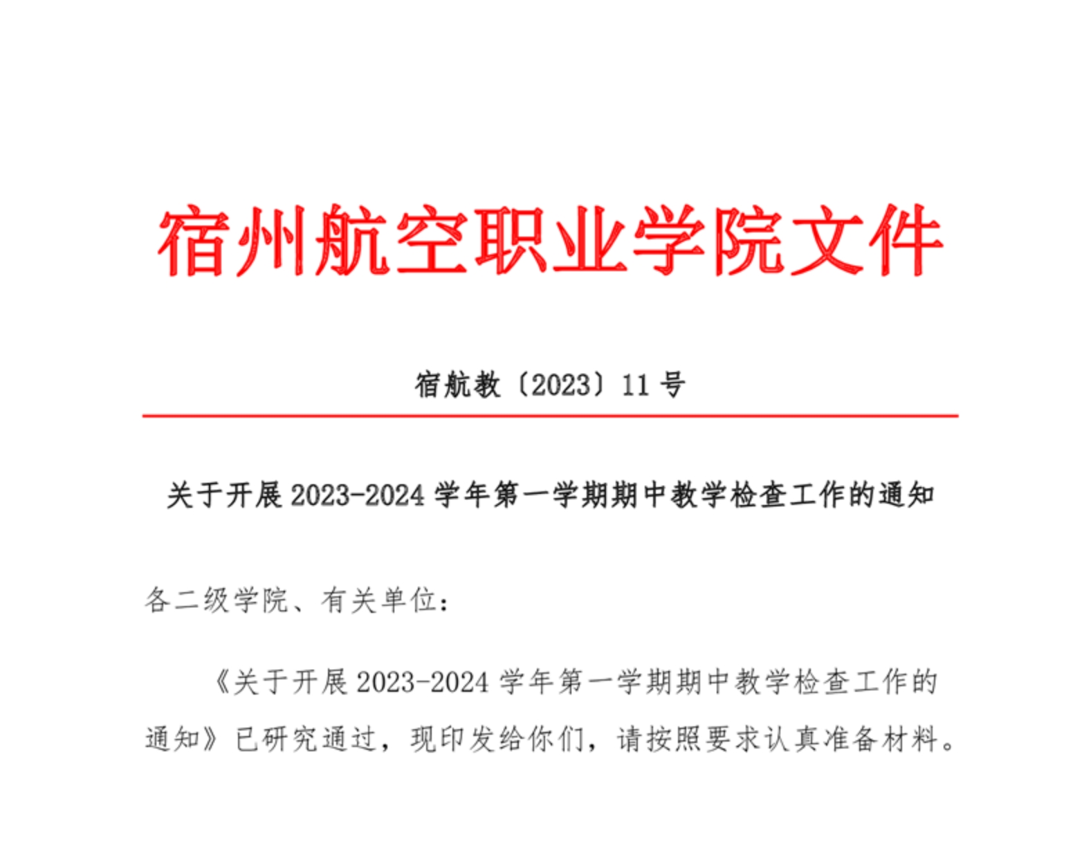 关于开展2023-2024学年第一学期期中教学检查工作的通知