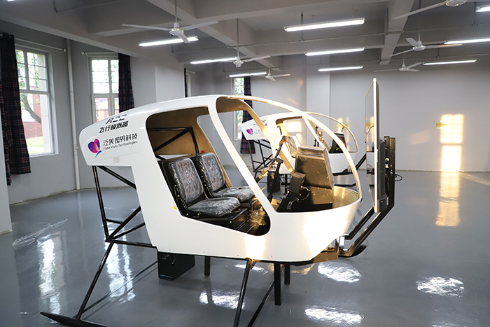 模拟飞行设备-R22是由校企合作公司成都泛美视界科技有限公司自主研发,主要要用于定翼机驾驶技术专业学生的地面训练。设备能够模拟驾驶的操作过程和飞行的环境,帮助学员尽快进入到飞行训练环节。