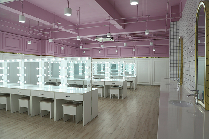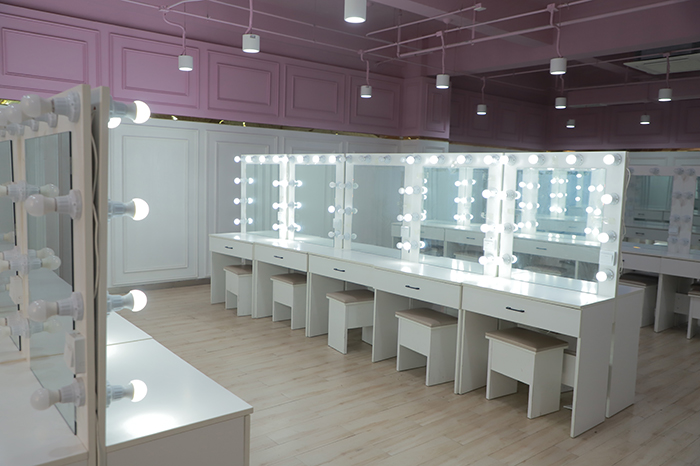 形象设计与化妆实训室🚴🏼。此间实训室占地面积约86平,可容纳30名学生进行教学实训,专供化妆美容使用。化妆台由化妆镜🧝🏻‍♂️、化妆台面💂、化妆椅及相应的灯具构成。化妆镜通常较大,使化妆者清楚地看到自己脸部的各个地方。化妆镜专用照明灯装在镜子两边。