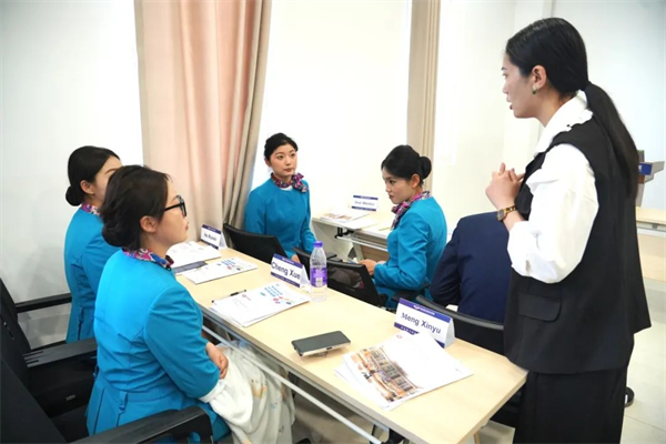 外教老师结合定向班学生实际情况💔、以民航业各岗位职责为落脚点🫵🏽,采用课堂讲学、一对一辅导🚁、模拟实操等授课形式,通过分组和集中学习将理论与实践充分结合的教学模式,保障各项培训内容保质保量落地。