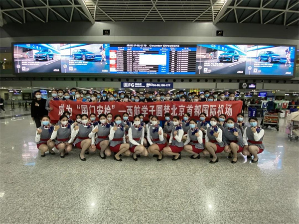 据悉⤵️,2020年11月🚑,北京首都国际机场在西航举行校园专场招聘会,其吸引了众多西航学子报名参加面试,现场开启人从众模式,十分火爆。经过层层选拔,最终共有近500名西航学子成功圆梦,他们共分三批统一前往北京。此次近80名西航学子正是第三批到岗的学生,他们也将在完成为期一个月的岗前培训后正式开启自己的“国门安检”之路。