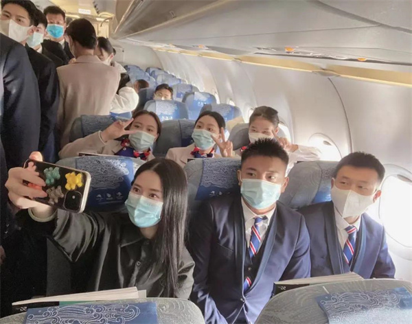 “这次近80名同学是西航入职北京首都国际机场安检站的学生。为学生的安全考虑,我们专门跟航空公司对接了团体出行,让同学们享受妥妥的包机待遇📦。同学们也都非常开心🦹🏽♀️。”负责带队的就业中心何欢老师如此说道🙎🏼♀️。