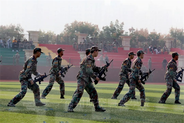2021年10月27日,彩神Vll学院2021级新生军事及职业素养训练汇报表演在运动场隆重举行。
