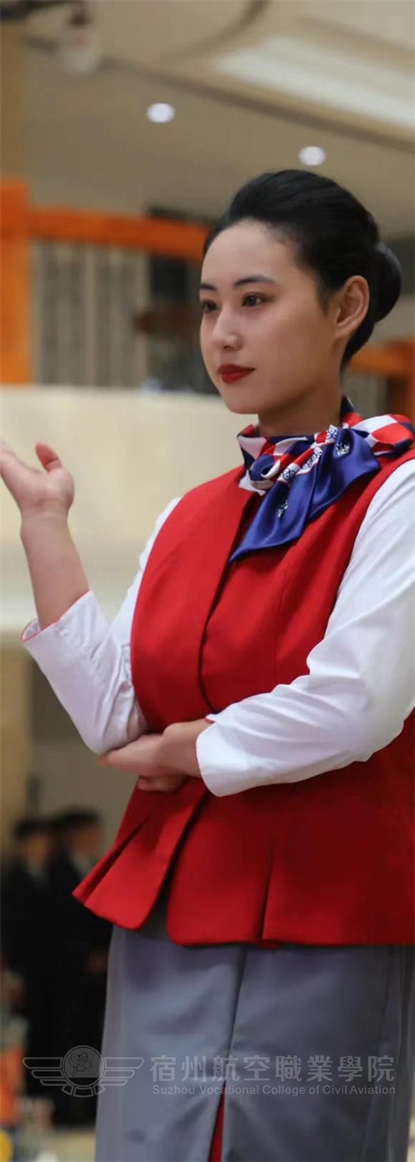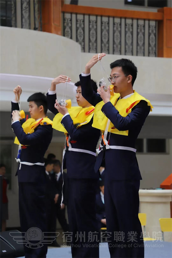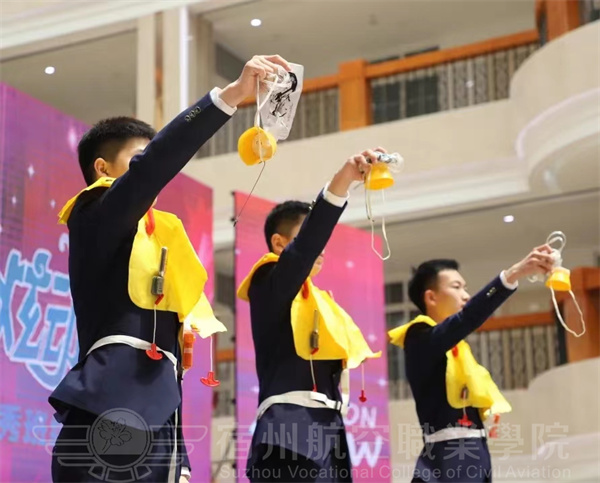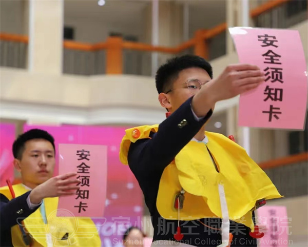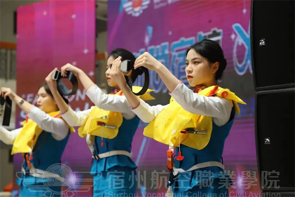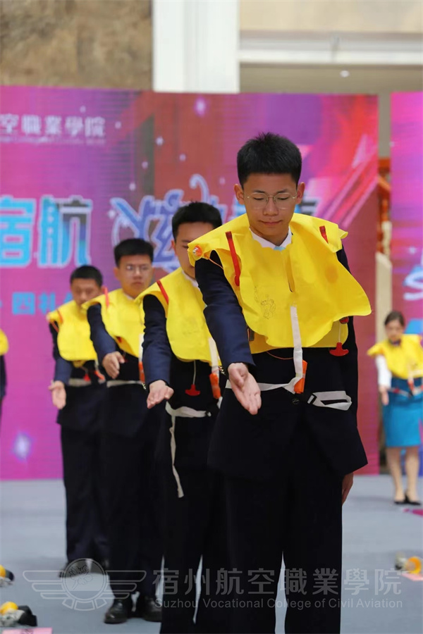 空中乘务专业的学生集体演绎专业技能,准乘务员向现场的师生们展现了客舱安全演示场景,娴熟的动作、良好的职业素养,成功的向我们塑造了一个真正民航员工的形象。