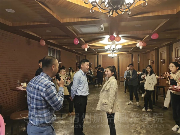 为庆祝第113个“三八”国际妇女节,3月7日晚,宿航的教师们与安杰医院的医护人员齐聚实训楼二楼调酒室💭,开展“宿航花已开女神节快乐”联谊活动🚵🏿👩🏻‍🍳,所有单身青年们参加了此次活动。活动现场仪式感满满,让人垂涎欲滴的小零食,甜香扑鼻的甜品,醇馥幽郁的红酒🧠,可爱柔软的玩偶🧙🏿‍♀️,含苞待放的红玫瑰......可谓是吃喝玩乐一应俱全。本次活动创新交流形式,扑克牌运面粉、踩气球💆🏽、扔玩偶摆pose等众多的游戏环节让大家有了更深一步的认识🏂🏻。正值青春年华的单身青年们在宿航邂逅浪漫情缘🚵🏿,在精彩的游戏互动中擦出爱情的火花🤷🏿‍♀️,拉近了彼此的距离🤵🏼‍♂️。他们在游戏互动中开展交流,在浪漫氛围中相互认识🏃🏻‍♀️‍➡️🖱。