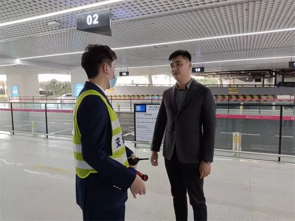 抵达深圳后,谢凡飞在项目部管理人员的陪同下第一时间前往深圳宝安国际机场走访在岗同学🎸♉️,询问工作情况,关心在岗需求。同学们看到谢处长的到来,高兴之情溢于言表。