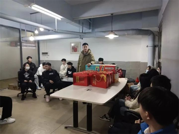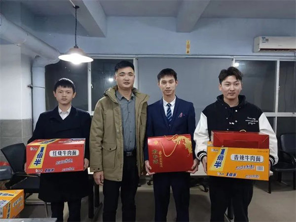 ▲谢凡飞为学子送上学院慰问品
