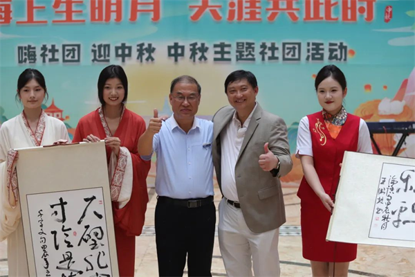 海上生明月,天涯共此时。值此中秋佳节之际,来自宿航的美食社和手工社亲手制作手工月饼;王卫林带领书法社亲手写毛笔字赠送Vincent♐️;音乐社献上了优美动听的英文歌曲;舞蹈社也献上了独具安徽特色的舞蹈表演《黄梅雅韵》🧑🏿‍🚀。