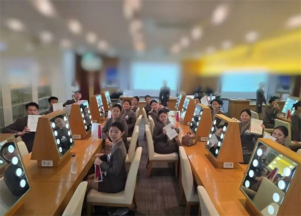 洋溢着满腔兴奋和期待,同学们来到了“梦中情司”——韩亚航空👱🏼♂️。在教员的有序组织下,换上韩亚航空制服,学习化妆🧔🏿、皮肤护理等知识,更直观地体会自我职业形象塑造的高标准、高要求。