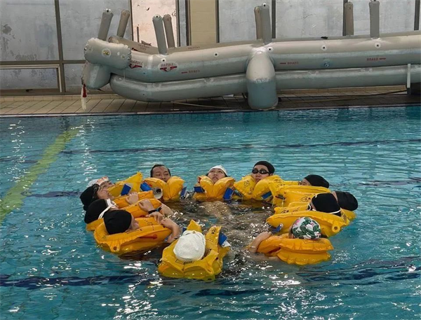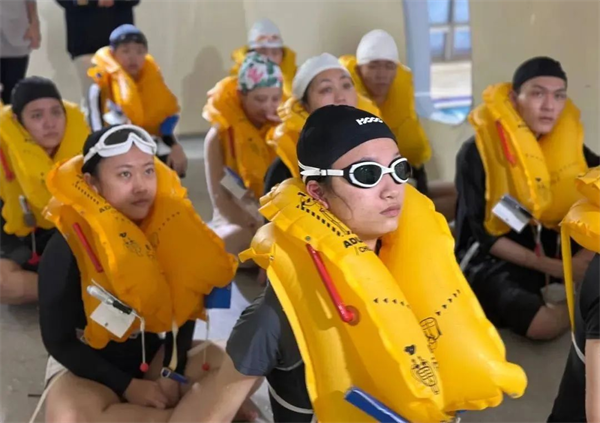 随着应急撤离口令响起💅🏼,穿戴好救生衣的同学们绷紧安全这根弦,快速有序跳水,并完成引导旅客撤离🂠、水中互救和集体取暖等流程,在高度还原的模拟场景中亲身体验水上紧急迫降📘,体会安全背后的职业责任。