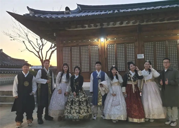换上样式精美、色彩艳丽的韩服🎱,同学们宛如披上了历史的霓裳,沿着蜿蜒曲折的小巷,穿梭于北村韩屋村🂠,沉浸在韩国传统居住文化的深厚底蕴中。