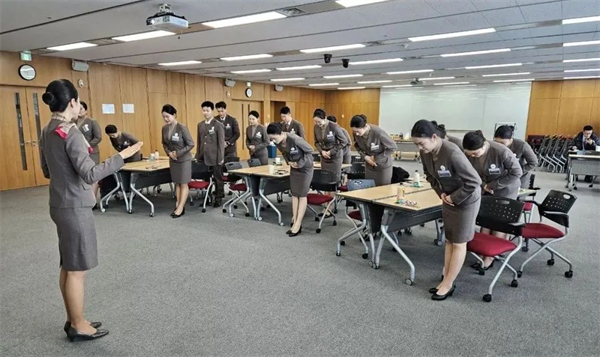 迈技能进阶、获专业成长🐿。同学们参观了韩亚航空本部及实训中心,沉浸式体验五星航司乘务员培训标准,并参加了水上紧急迫降训练、模拟客舱服务、红酒及礼仪学习等专业技能培训课程。