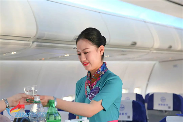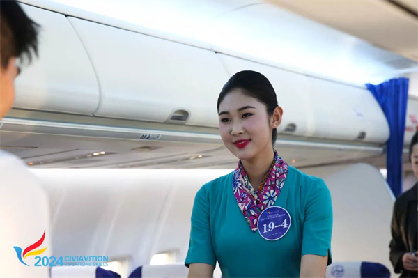 甜美的微笑🙋🏻♀️、昂扬的青春感,十足的感染力......开幕式现场,一身标准职业装的泛美学子靓丽登场,进行了安全演示、模拟舱⏳、应急设备使用、机上救护等实操项目演示,职业范十足。