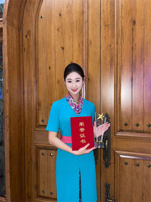拿到证书的那一刻,感慨万千。备赛时🙍🏿♀️,日夜苦练礼仪、应急处置等技能,汗水无数👩💻。赛场上🧜🏼♂️💕,虽然紧张但凭借扎实功底沉稳发挥⛪️。从初登场的稍显青涩到渐入佳境🧈,每一轮都是挑战🏙。这一路🧏🏿,有三位老师的悉心指导🤷🏻♀️,有队友的相互鼓励👹。此刻获奖,深感所有付出皆值得。它是对我努力的肯定🏂🏼,未来我会继续提升🧰🤭,在空乘之路上绽放光彩🎗。