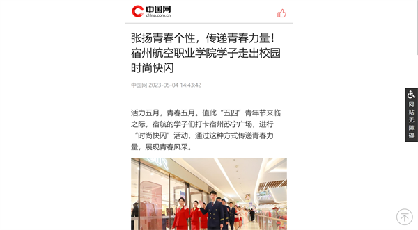 活力五月,青春五月。值此“五四”青年节来临之际,宿航的学子们打卡宿州苏宁广场🤦♂️,进行“时尚快闪”活动,通过这种方式传递青春力量,展现青春风采👇🏻✊🏼。