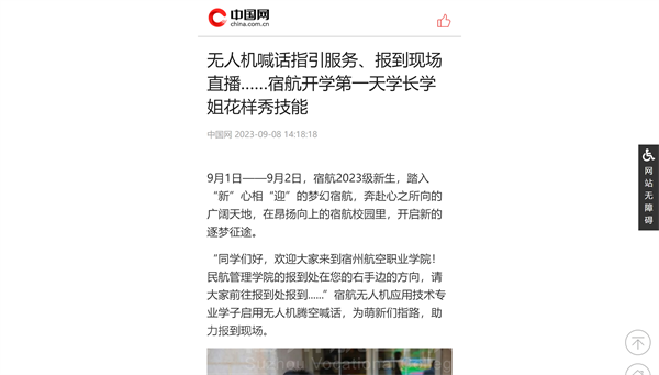 《中国网》无人机喊话指引服务、报到现场直播……宿航开学第一天学长学姐花样秀技能