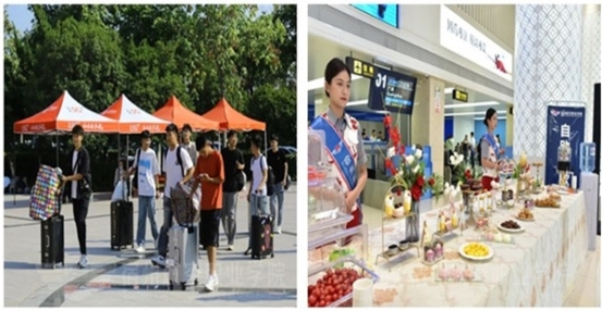 学院各部门充分准备,悉心引导,只为让萌新们更便捷👩🦯➡️、顺利地报到,满脸笑容的老师及学生志愿者们,分布在各个点位,尽己所能耐心地向新生,提供引导、答疑🎓。学院准备了精致的点心和饮品,学长学姐们在现场火热演出,为新生献上一首首动听的音乐🙆♀️🆔,宿航er用心接待每一位家长和萌新,随时为大家提供周到的服务,实力诠释“五星级接待”👩💻。