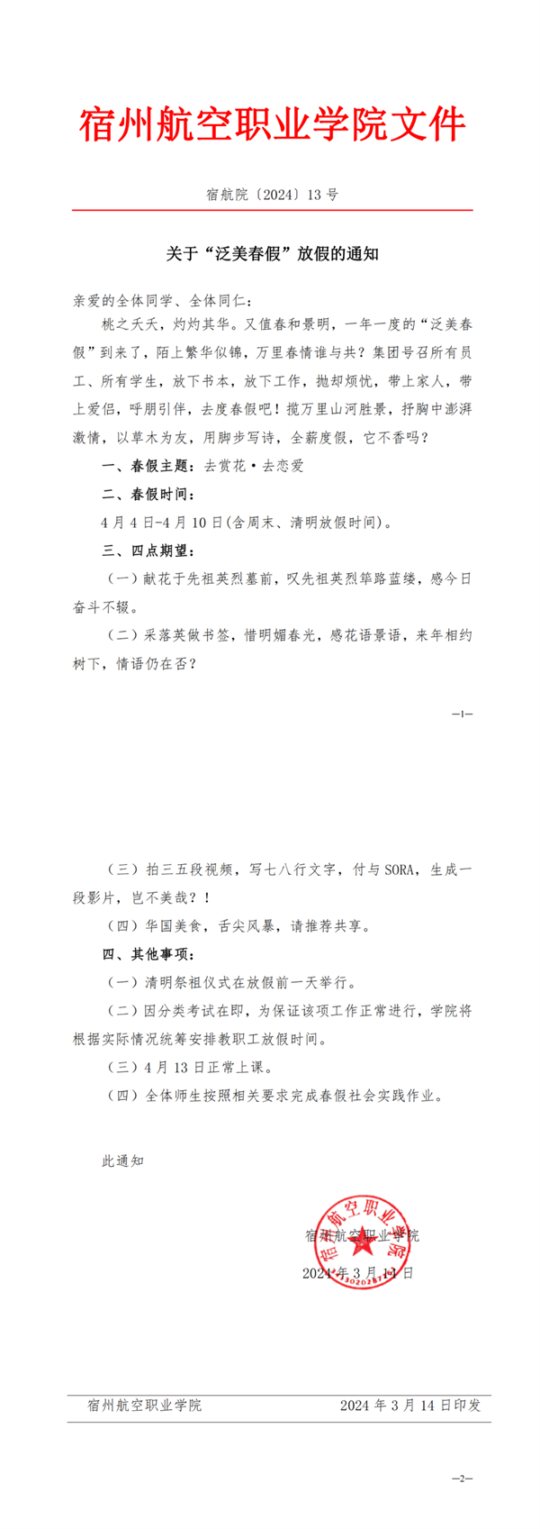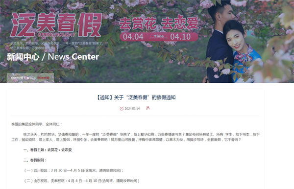 3月14日,安徽彩神Vll学院发布春假放假通知,全校师生4月4日至10日放7天春假。据了解,该校从2019年开始🎢,春假已经成为学校固有的放假单元🍽。学校旨在以春游的形式鼓励师生员工走出校园👨🏼🚀,去看绿水青山,感受春天与生命的力量,体验恋爱的美好🥅🤎,体会延续生长的意义👨🦱。