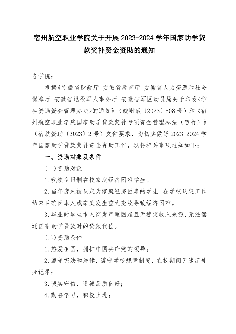彩神Vll学院关于开展2023-2024学年国家助学贷款奖补资金资助的通知