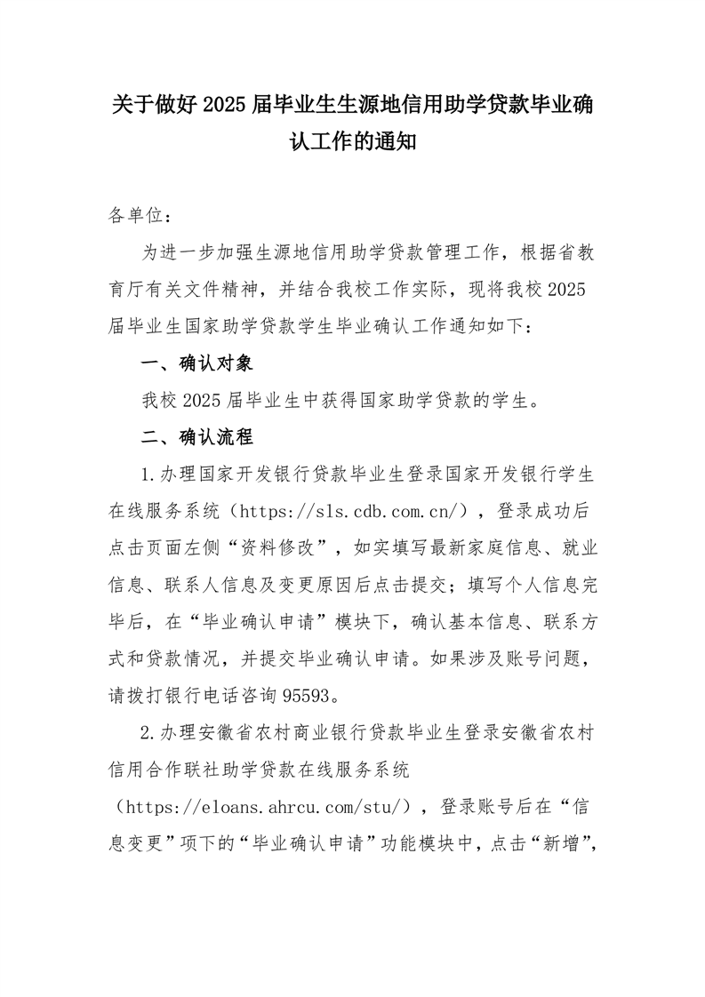 关于做好2025届毕业生生源地信用助学贷款毕业确认工作的通知