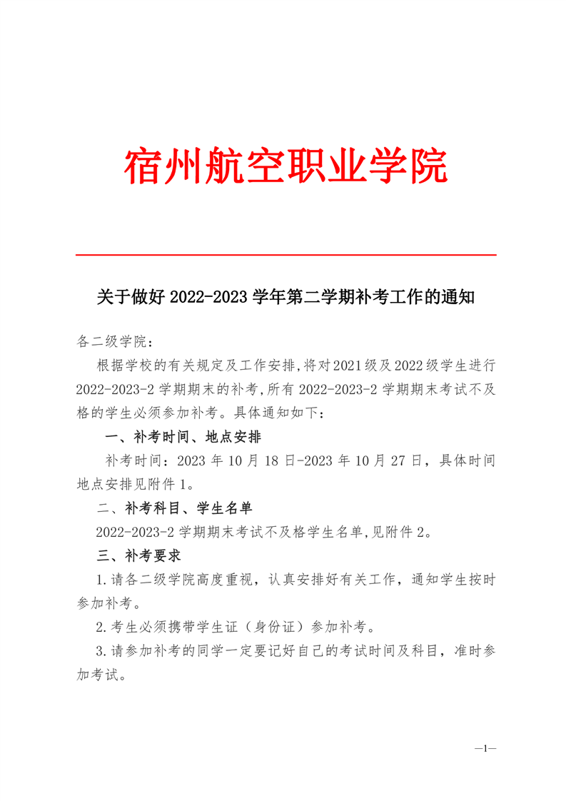 关于做好 2022-2023 学年第二学期补考工作的通知