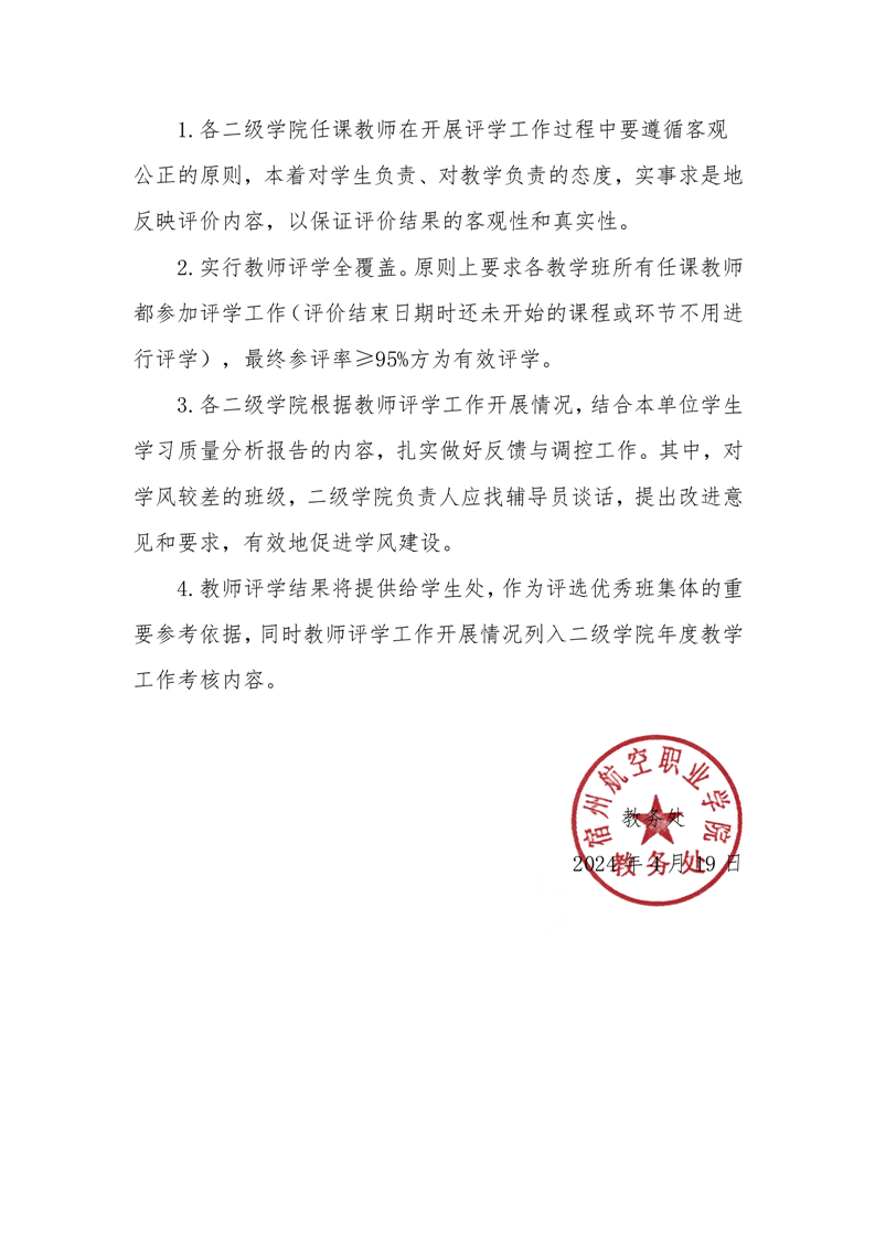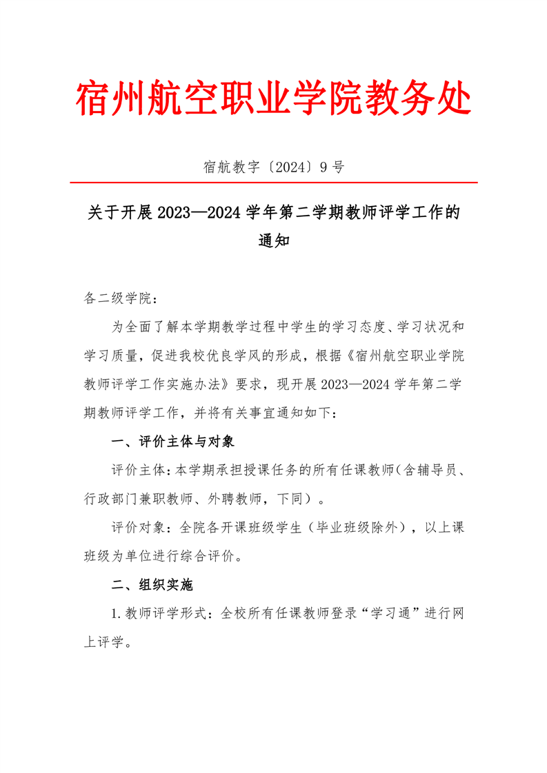关于开展 2023—2024 学年第二学期教师评学工作的 通知