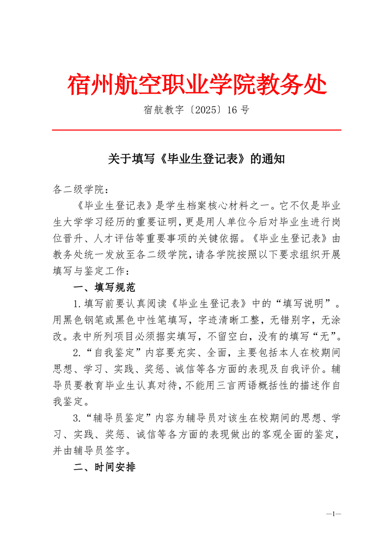 关于填写《毕业生登记表》的通知