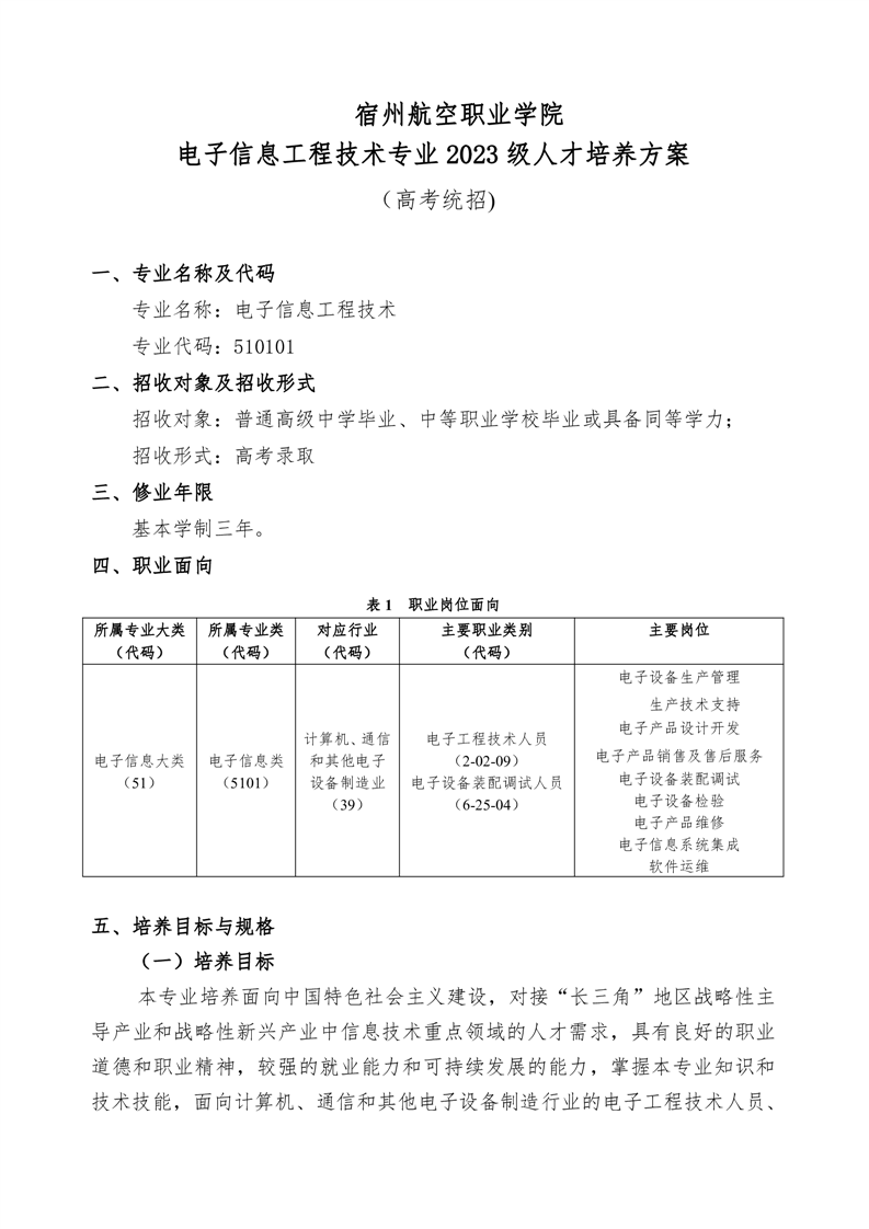 彩神Vll学院电子信息工程技术专业 2023 级人才培养方案(高考统招)