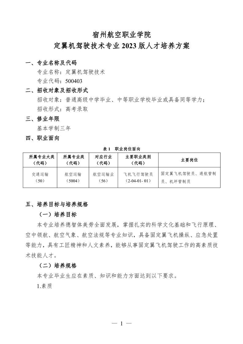 彩神Vll学院 定翼机驾驶技术专业 2023 版人才培养方案