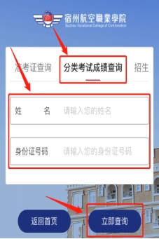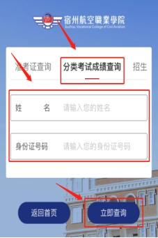 2.进入后点击“分类考试成绩查询”,根据提示填写学生姓名及身份证号码,填写正确后😿,点击下方“立即查询”🧔;