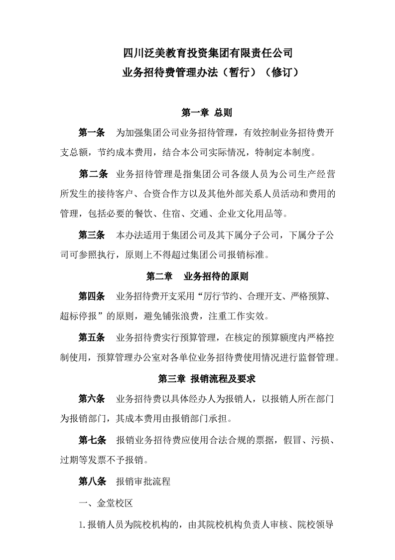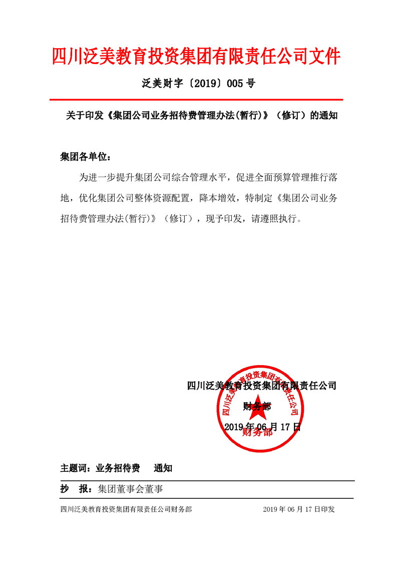 关于印发《集团公司业务招待费管理办法(暂行)》(修订)的通知