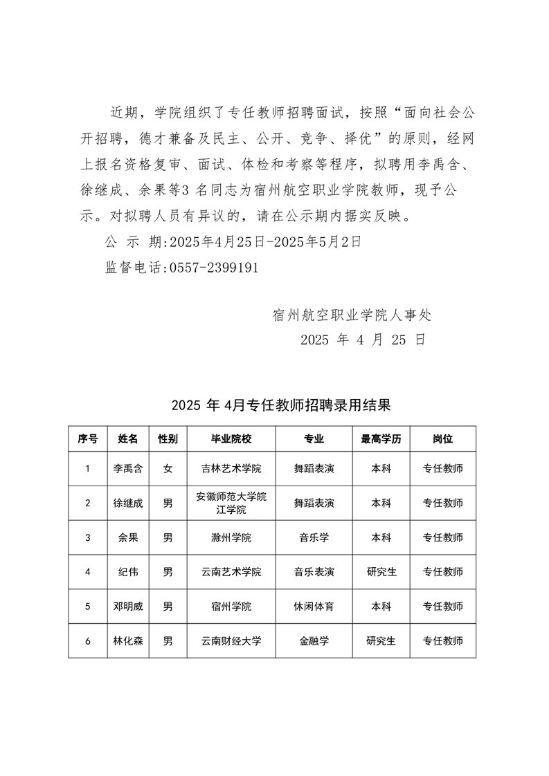 彩神Vll学院2025年7月专任教师、辅导员招聘录用公示