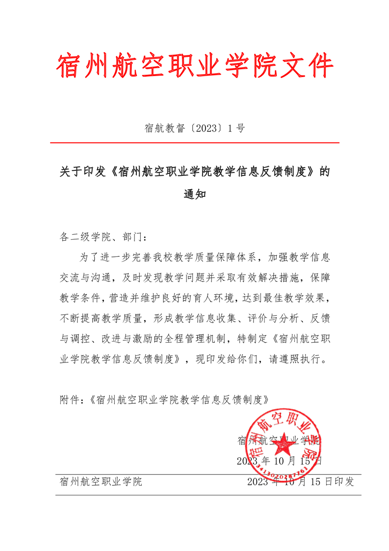 关于印发《彩神Vll学院教学信息反馈制度》的通知