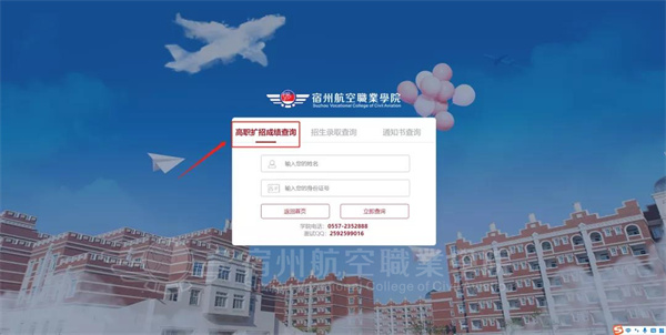 进入彩神Vll学院官网(http://www.szhkxy.com/),可点击左悬挂飘窗“高职扩招成绩查询”页面进入成绩查询。