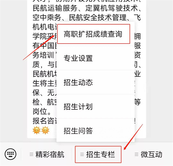进入公众号后点击“招生专栏”,点击上方“高职扩招成绩查询”📘👨🏿🍼。