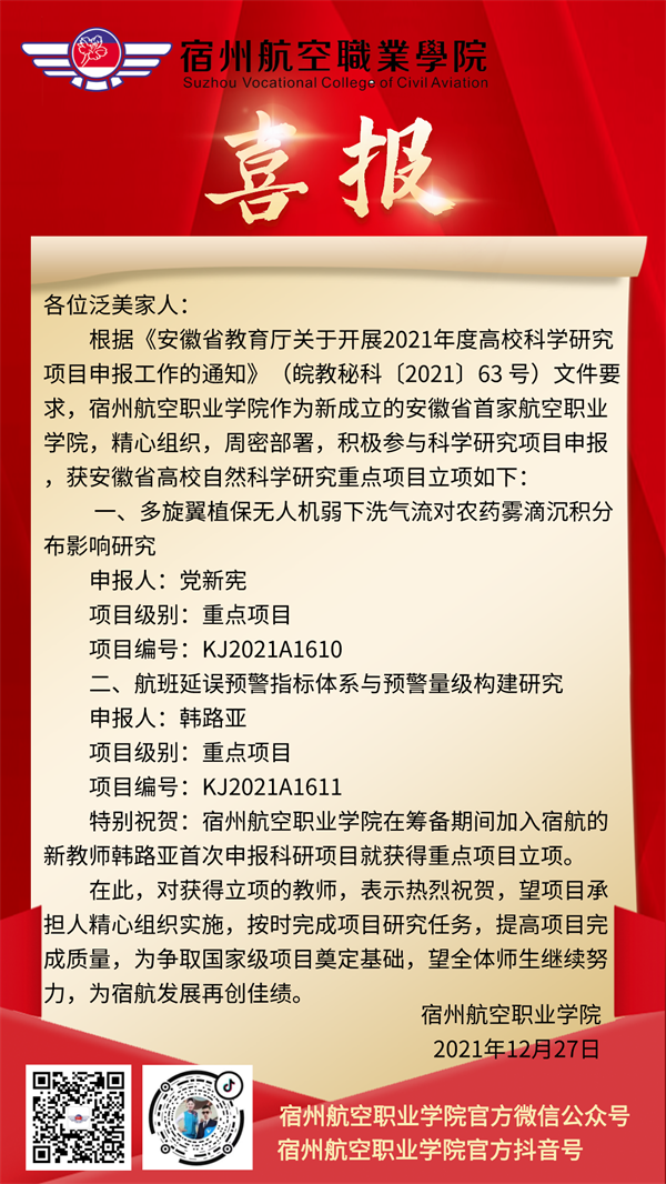 除此,2021年宿航院分别获批“安徽省第二批国际交流合作基地”及两项科研项目获“安徽省高校自然科学研究重点项目立项”。学院在国际交流和开发合作方面有引领、示范、带动作用👨🏻‍🎓。
