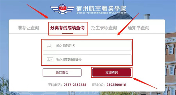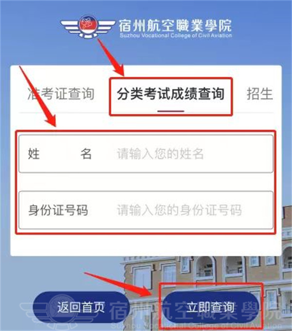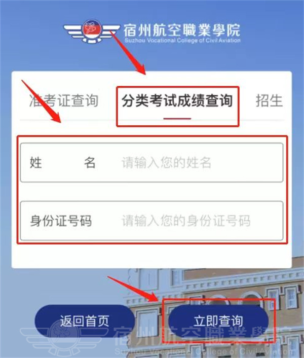 2.进入后点击“分类考试成绩查询”,根据提示填写学生姓名及身份证号码,填写正确后👏,点击下方“立即查询”🚜;