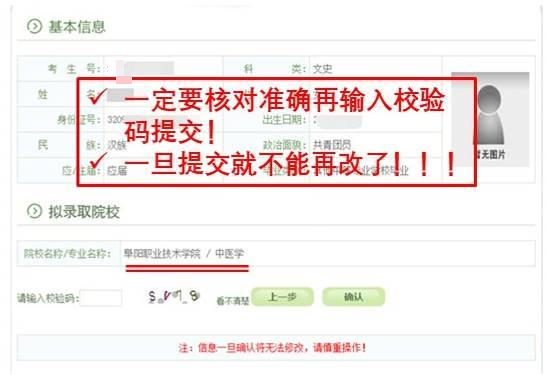 2.用自己设定的密码重新登录🖇,进入录取院校确认界面(示例):