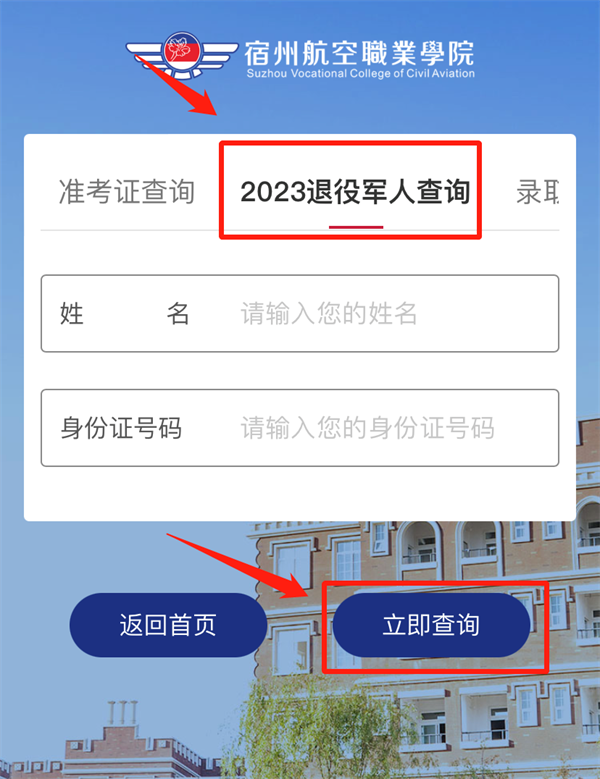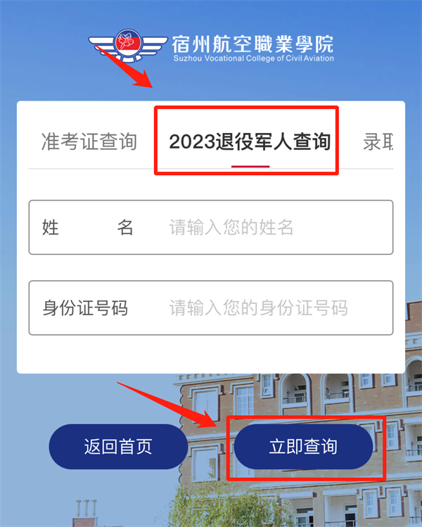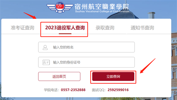 2.进入后,点击“2023退役军人查询”🤐,根据提示填写学生姓名及身份证号码🧙🏽‍♀️,填写正确后🧑🏽‍🌾,点击“立即查询”,即可查看资格审核结果;