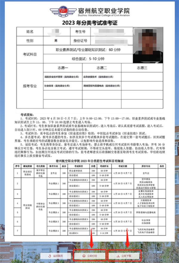 3.登录后🛏,请考生仔细核对个人信息,核对无误后,点击下方“立即打印”或“立即下载”,就能打印准考证了。