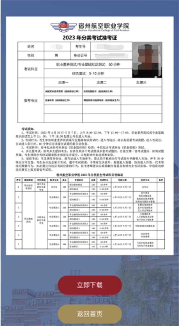 4.登录后🧖🏼‍♀️,请考生仔细核对个人信息🌮,核对无误后点击下方“立即下载”,下载完成后,即可保存图片,打印准考证📲🚴🏿‍♂️。