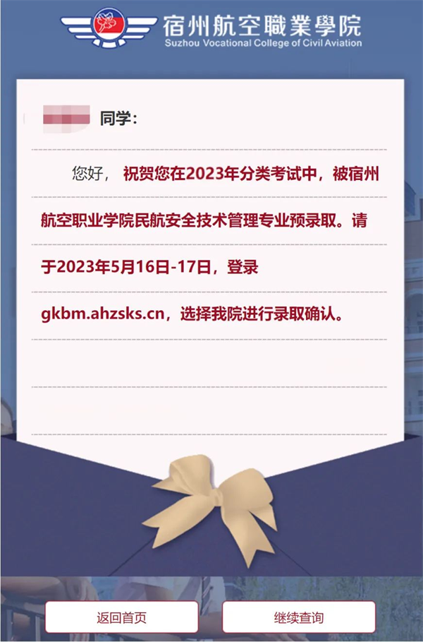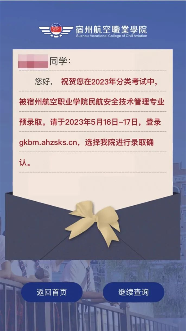 3.点击“立即查询”后,即可查看预录取结果,页面如下: