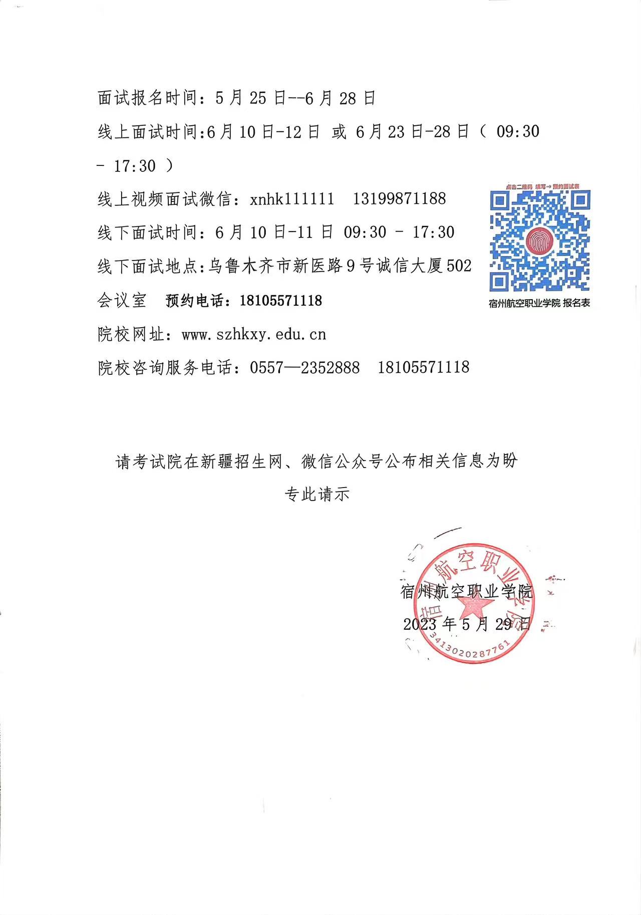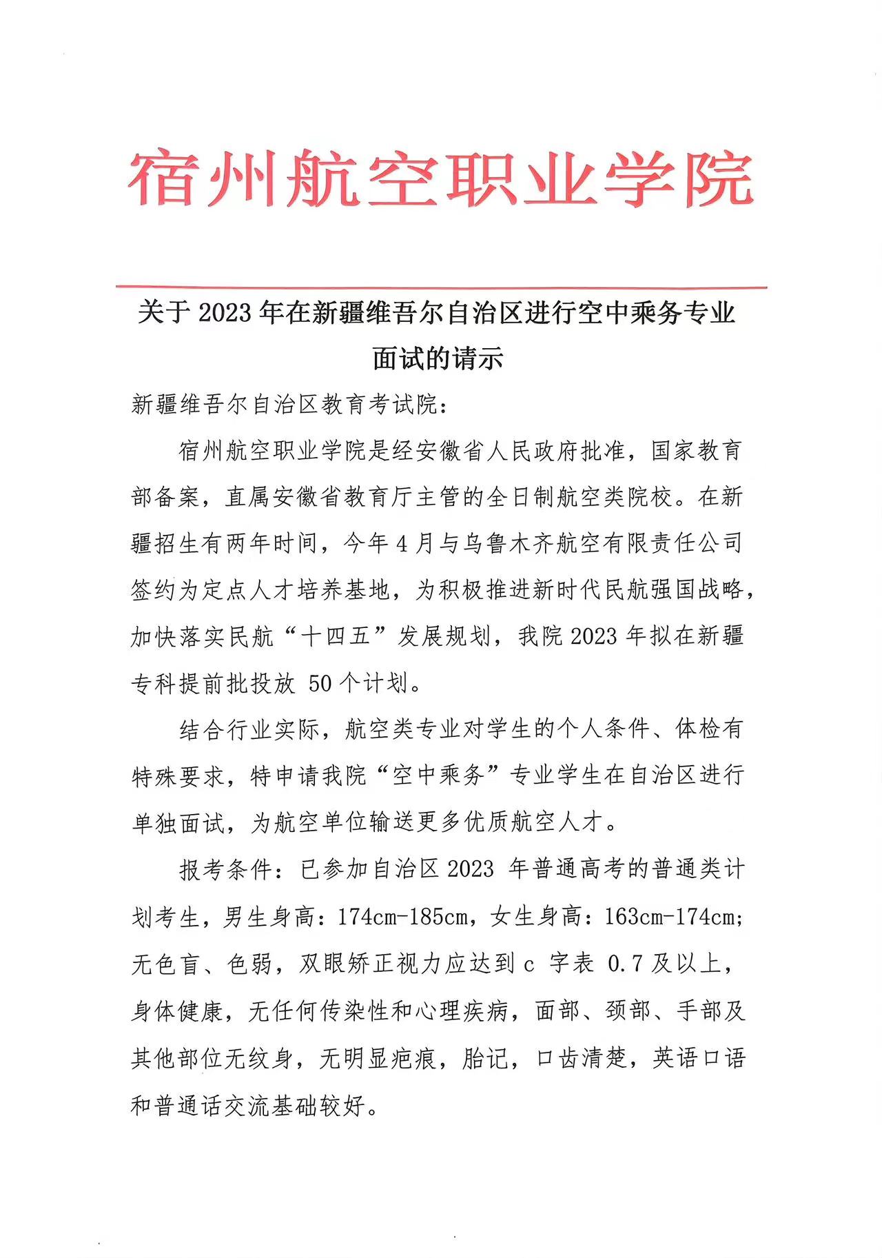 彩神Vll学院2023年在新疆维吾尔自治区进行空中乘务专业面试的请示