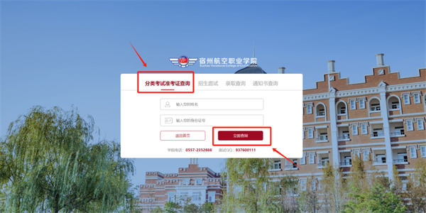 2.进入后点击“分类考试准考证查询”💂♂️,根据提示填写学生姓名及身份证号码🙌🏻,填写正确后,点击下方“立即查询”;