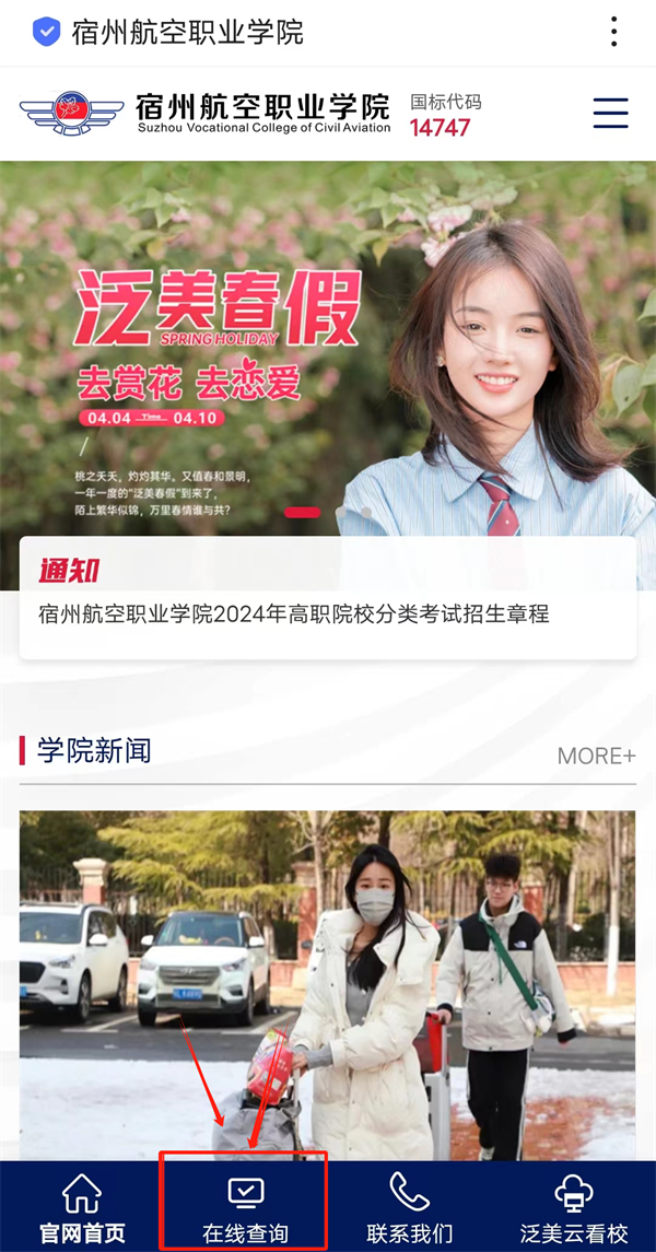 1.手机登录彩神Vll学院官网(https://szyuecheng.com/),点击页面下方“进入首页”🧎🏻♀️➡️☄️,进入首页后选择下方“在线查询”;