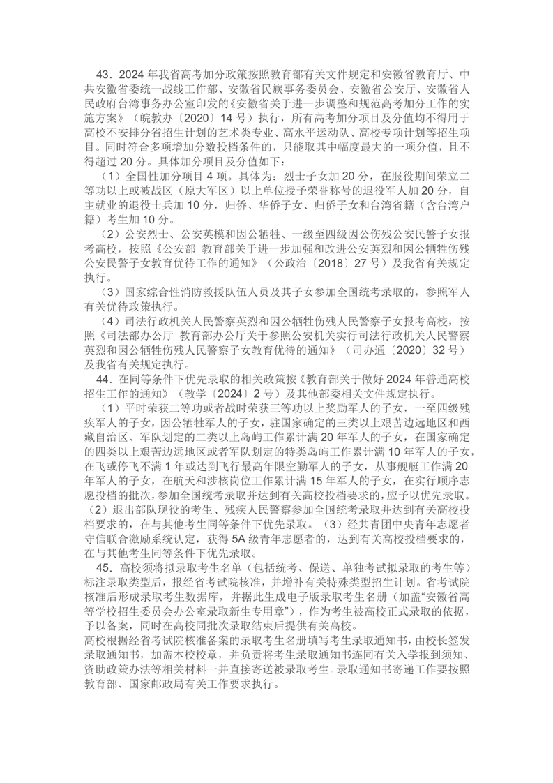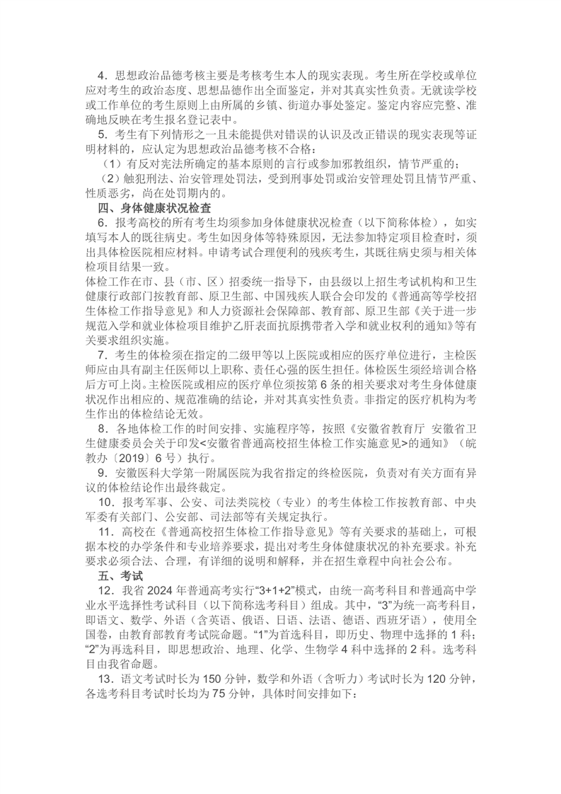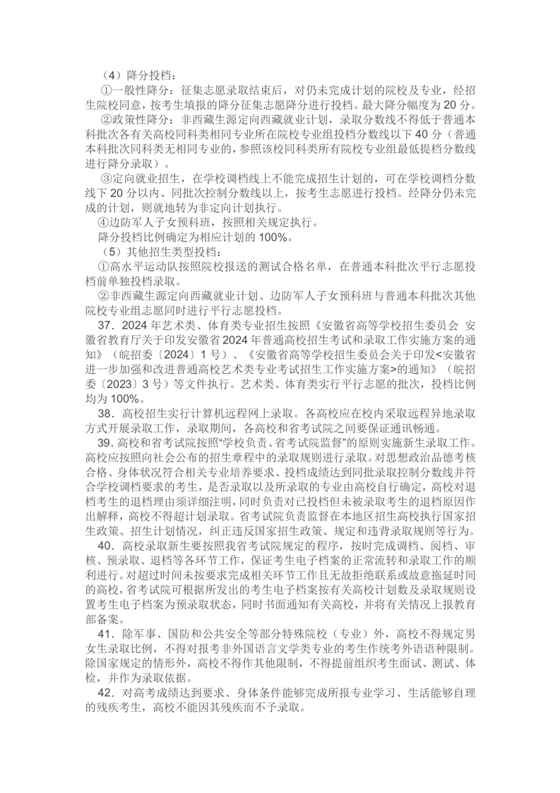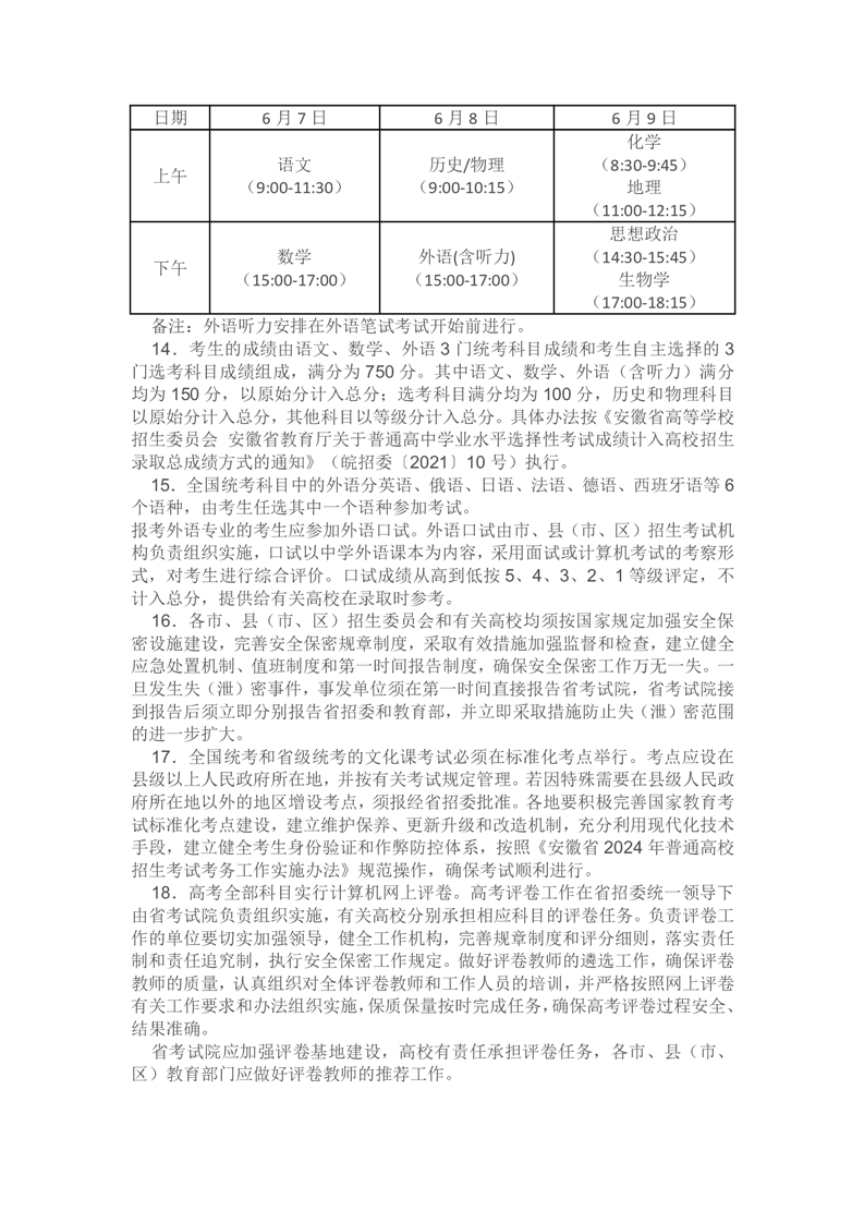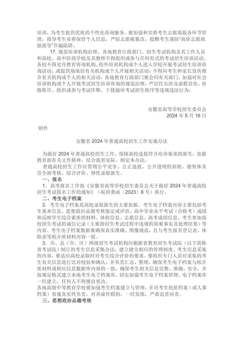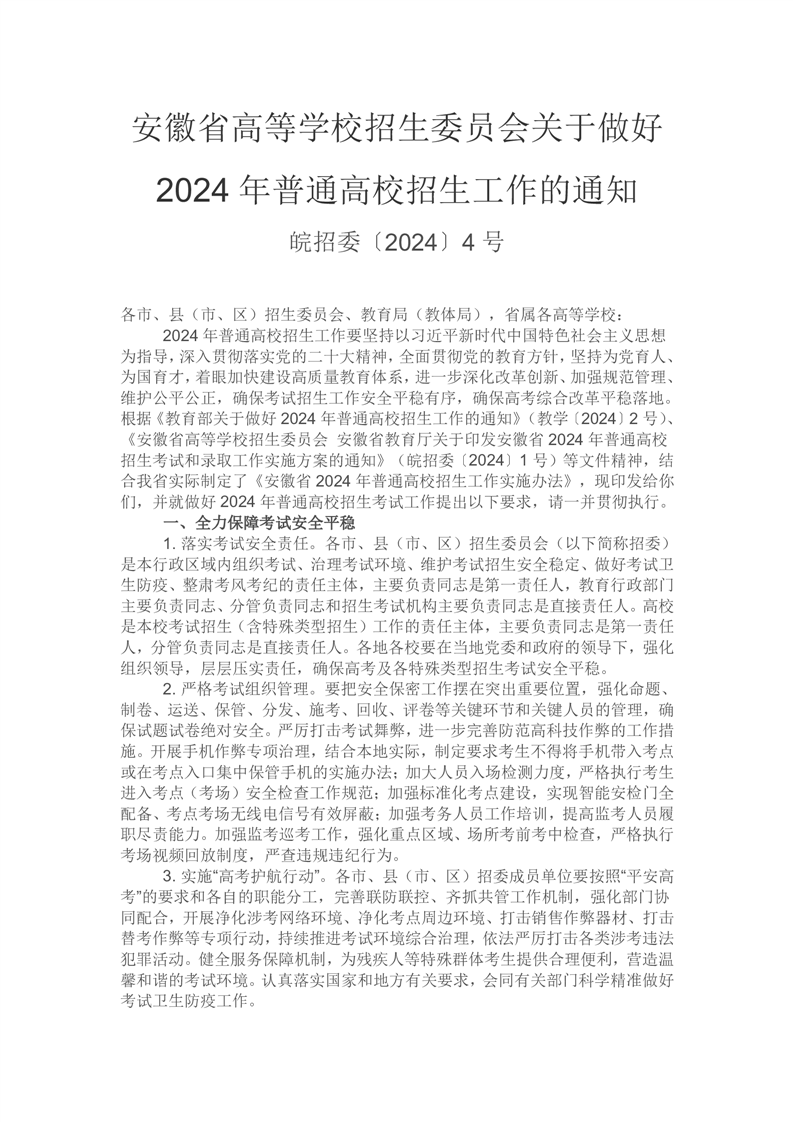 安徽省高等学校招生委员会关于做好2024年普通高校招生工作的通知