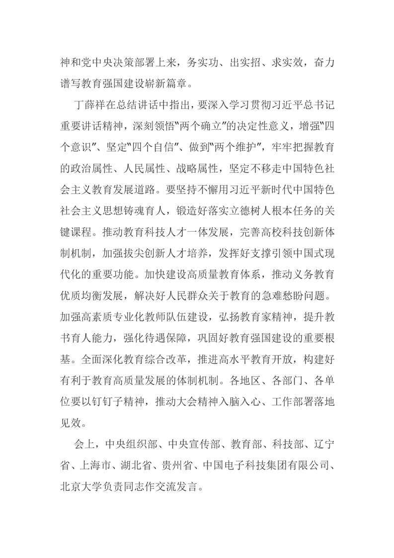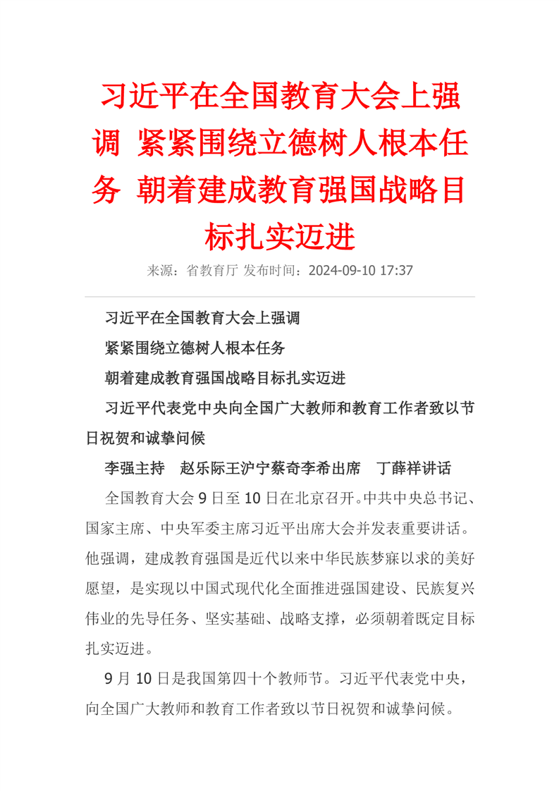 习近平在全国教育大会上强调 紧紧围绕立德树人根本任务 朝着建成教育强国战略目标扎实迈进
