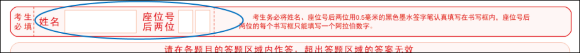一是答题卡正面的“姓名”和“座位号”👔。《注意事项》下方位置的“缺考标记”切勿填涂🥤,否则将影响判分👉🏻,后果自负📭。