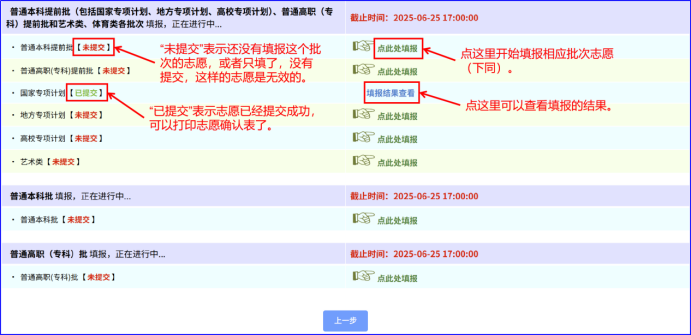 特别注意🍩,根据不同的填报批次🙇🏿、考生的科类、考生可填报的志愿类型🧎♂️➡️,考生看到的显示内容可能与下面的示例不同: